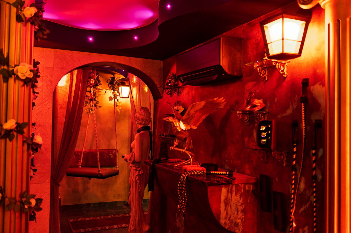 Pensée pour les couples en quête d’évasion et de sensualité, cette Love & Sex Room vous transporte dans un univers inspiré de la Rome antique, où luxe, mystère et plaisir se rencontrent dans une atmosphère intime et envoûtante à l’époque de Rome.